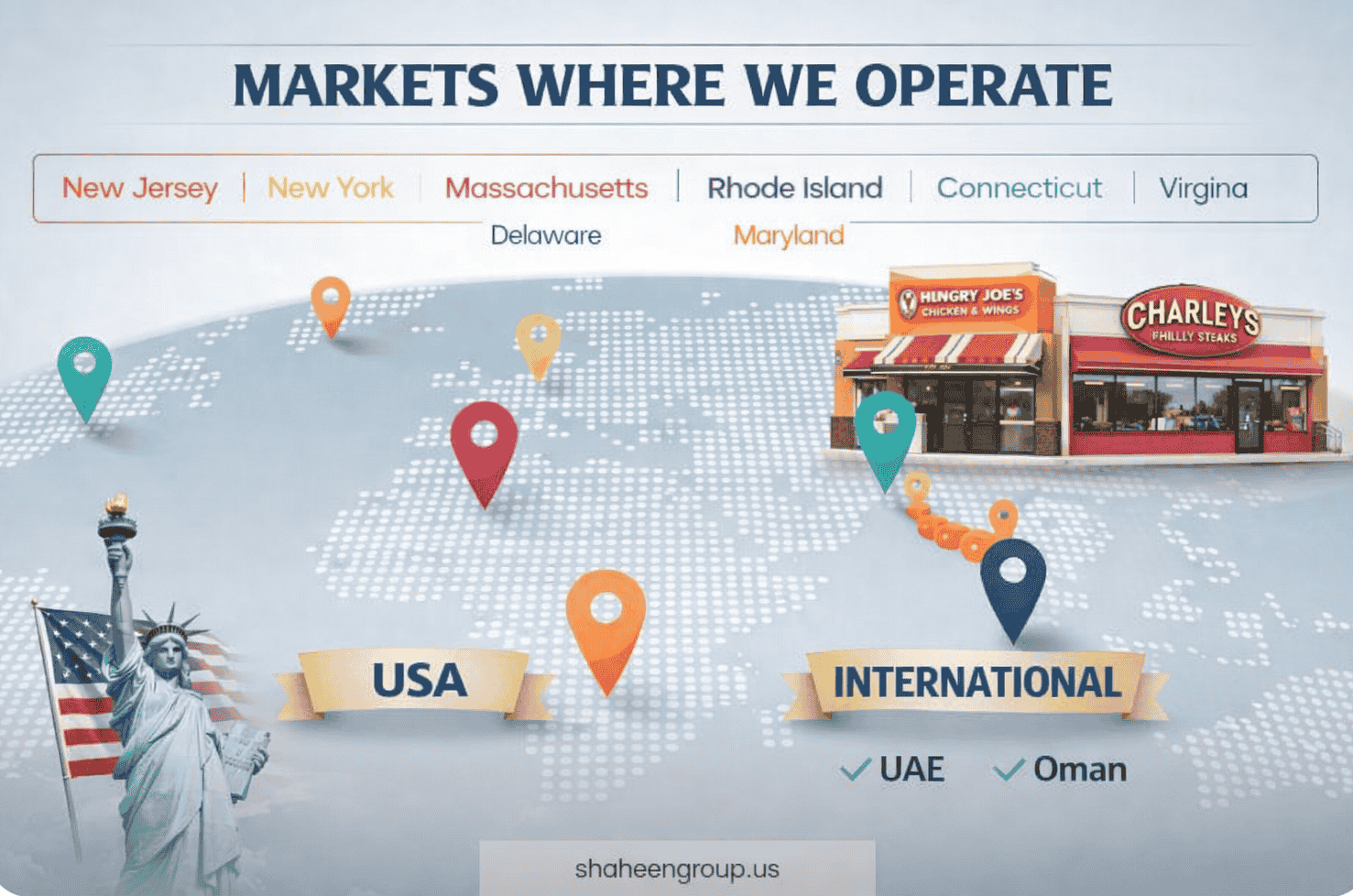Shaheen Group operates across the USA and international markets, supporting brands, partners, and franchises worldwide.