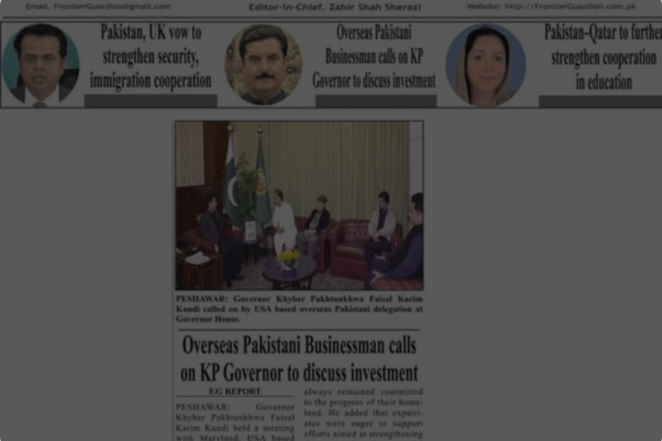Peshawar: A delegation from Shaheen Group, based in Maryland, USA, met with the Governor of Khyber Pakhtunkhwa, Faisal Karim Kundi, at the Governor House Peshawar. The meeting included Syed Mujahid and Syed Muhammad Iqbal, Founder and CEO of Shaheen Group… Read More »Shaheen Group Discusses Investment with KPK Governor